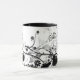 Ein Mit Tinte schwärzen der schönen blühenden Blumen und der Pflanzen auf einer Tasse.