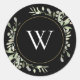 Die Blätter sind in zarten Farben gehalten und auf einem schicken, schwarzen Hintergrund. Dieser botanische Aufkleber kann mit Ihrem Monogramm-Initial personalisiert werden. Ideal für Hochzeiten, Brautpartys, Babyduschen, Taufen, Verlobungsfeiern, Jubiläumsfeiern, Abschlüsse, Geburtstagsfeiern und andere besondere Veranstaltungen das ganze Jahr über! Entwickelt von Thisisnotme©