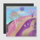 Diese wunderschöne abstrakte Landschaft zeigt eine sanfte Hügelkulisse mit blühenden Frühlingsbäumen und Vögeln in Rosa, lila, Beige, Bräune, Gold, Grün und Blau.