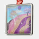 Diese wunderschöne abstrakte Landschaft zeigt eine sanfte Hügelkulisse mit blühenden Frühlingsbäumen und Vögeln in Rosa, lila, Beige, Bräune, Gold, Grün und Blau.
