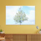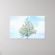 Blick auf einen jungen Apfelbaum in voller Blüte im Frühling vor dem Hintergrund von weichem blauen Himmel und weißen Wolken. Und nichts mehr. Nur weiße und rosa Apfelkuchen und weiße Blume. Und nichts mehr. Die perfekte Allegorie des Frühlings und der Wiederbelebung der Natur. Frohe Ostern! Mögen Sie die Hoffnung auf neue Anfänge, Liebe und Glück während dieses freudigen Osterurlaubs spüren.