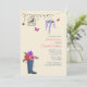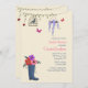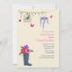 Eine leichte, frühlingshafte Einladung mit einem Regenschuh voller Blume, einer Rebsorte mit einem Vogelkäfig, einem Hängeltopf aus Lavendel-Blume und Schmetterlingen. Geeignet für jede weibliche Gelegenheit. (RP)