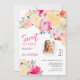 Frühlingsrosa boho schicke Garten Blumenladen Sweet 16 Geburtstagseinladung mit hübschen handgemalten original Aquarell-Blumen in hellrosa, gelb. orange und üppig grüne Blätter und Blattwerk. Ein hübsches, blumengeschmücktes 16 . Geburtstag-Party, ideal für einen Brunch im Freien, ein Gartenfest oder ein Party im Frühling