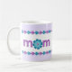 Benötigen Sie ein spezielles Geschenk für diese fantastische Mamma in Ihrem Leben? Geben Sie ihr eine Frühlings-Blumen-Tasse der Mutter Tageslila. Ein, das, helle Türkisgänseblümchen-Blume einfach ist, findet des ` O' in ` Mama statt', die in einen sauberen, modernen lila Schriftart geschrieben wird. Eine herrliche Sammlung Lavendel- und Türkisgänseblümchen und Frühjahrspaß ist auf einem blassen lila Hintergrund. Ob Ihre Mutter traditionell oder zeitgenössisch ist, wird sie Liebe der niedliche, wunderliche Blick dieses Entwurfs für den Tag der Mutter.