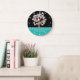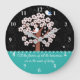 Frühlings-kennzeichnet personalisierte Wanduhr des Blumengarten-Ermutigungs-Zitats ein schönes Zeichnen eines Frühlingsgartens mit einem Baum, der in den rosa Blumen, mit zwei weißen Vögeln des Gesangs mit farbigen Flügeln gegen einen schwarzen Hintergrund mit blassen Strichzeichnungen von mehr Blumen auf den Spitzenzwei drittel blüht und das emporhebende und anregende indische Sprichwort im schönen Text im Weiß, auf einem Aquamarine ausgebogten Hintergrund, der sagt, "alle Blumen alles Morgens sind in den Samen des heutigen Tages." Sie können diese Uhr personifizieren, indem Sie die Form oder die Größe ändern, das Zitat ändern, Namen oder Initialen oder addieren tatsächlich, alles, um diese hübsche Uhr Ihr einzigartig zu machen ändern. See koordinierenWohngestaltungeinzelteile in unserem Zazzle Speicher DIYDecor.