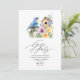 Feiern Sie in voller Blütenpracht mit dieser Einladung zur Frühlings-Gartenparty, mit einem Wasserfarb-Blauhäher, der auf einem charmanten hölzernen Vogelhaus unter weichen Blumen sitzt. Perfekt für Geburtstage, Brautduschen, Teepartys, Osterbrunches oder jede Frühlingsfeier. Dieses elegante und vielseitige Design verbindet die Schönheit der Natur mit klassischer Eleganz und ist somit ideal für lockere Outdoor-Veranstaltungen und formelle Gartenevents.