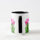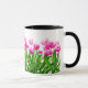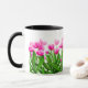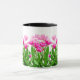 Ursprünglicher Entwurf der feinen Kunst der bunten rosa Tulpen durch Künstler Carolyn McFann zwei des schnurrenden Katzen-Studios druckte auf einer kundengerechten Kaffee-Tasse für Frühlings-Blumenfans.