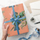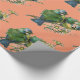 Reizendes Bild von zwei kleinen Vögeln, die auf einer Niederlassung mit Blumen, auf einem rosa Pfirsichhintergrund sitzen, werden auf diesem Geschenkverpackungspapier gekennzeichnet. Eine große Weise, einen Geburtstag, eine Dusche, ein Tag der Mutter oder ein Jahrestagsgeschenk und -mehr darzustellen!