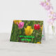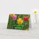 Der Schuss der Tulpe nah oben in einem Blumengarten mit mehrfarbiger Tulpe, mit dem Grün.