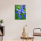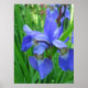 Frühlingsblaue Iris-Blume und grüne Blätter Poster