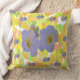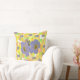 Frühlingsblumen werfen Kissen. Spiegelbild der Frühlingsblumen auf einem blassgesprenkelten gelben Hintergrund.
