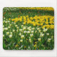 Ein Mauskissen mit einem attraktiven Foto von Frühlingsblumen, hauptsächlich Tulpen. In der Nähe von Gorsedd Gardens, Cardiff, Wales. Vereinigtes Königreich