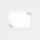 Frühlingsblumen Rosa Streifen Post-it® Notes 4 x 3. Goldener Rahmen mit Blumenstrauß (Frühlingsblumen: Korallenbäume und Lila-Tulpen, rosafarbene Kosmetik, blauer Crocus, gelbe Kronleuchter, grüne Blätter). Hellrosa Streifen. Einfach, frisch und niedlich.