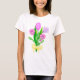 Blume, Tulpen und Stiefmütterchen mit gelbem Band. Es schmückt einen T - Shirt, ein wunderschönes Geschenk für Mutter oder Großmutter.