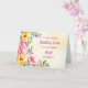 Hübsche und nachdenkliche Begrüßungskarte zum Geburtstag Ihrer Tante mit gelben, lila und rosa Frühlingsblumen, rustikalem Aquarellmuster und handgeschriebenem Stiltext.