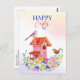 Frühlingsblumen und Vögel Haus glücklich Ostern personalisierte Postkarte.
