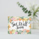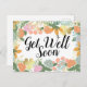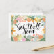 Schöne Blütenfeder in blühendem Blattwerk, mit rosa und pfirsichfarbenen Rose, verschiedenen skurrilen Pflanze und zwei viel Glück-Nelken. Liebliche "Get Well bald" farbenfrohe Blume Grußkarte.