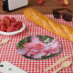 Frühlingsblüten mit doppeltem Rot und weißem Azale Pappteller