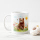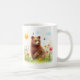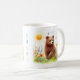 Tasse mit einem braunen Bären in Aquarellfarbe in einem Frühling strahlt Landschaft aus. Personalisierbar.