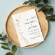Frühlingsschlichte Wildblume Blumendesign ist zart und mutig genug, um Ihren Gästen einen bleibenden Eindruck zu vermitteln. Mit der Fähigkeit, alle Details zu personalisieren, ermöglicht diese Hochzeitseinladung Ihnen, Ihre Vision zum Leben zu erwecken und dabei eine Atmosphäre der Eleganz und Einfachheit zu bewahren.