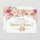 Werden Sie meine Trauzeugin-Card mit rosa, goldfarbenen Frühlingsblumenmotiven sein? Ideal für Ihre romantische Frühlingshochzeit.