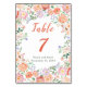 Frühlingsflorale Blume Hochzeit Tischnummer