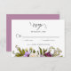 Die Rustikale Hochzeitskarte RSVP, die sich für eine böhmische Frühlingsfeier eignet, stellt Ihnen unsere Frühlingsblütengrün vor. Mit ihren farbenfrohen Blume und Grünpflanzen präsentiert diese RSVP-Karte eine atemberaubende Mischung aus lila und rosa Blüten, hellblauen und weißen Akzenten und eleganter Schriftzypografie.