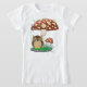 Die grausige kleine Eule versteckt sich unter einem Pilz als Schirm, um vom Regen behalten.