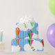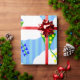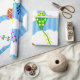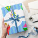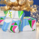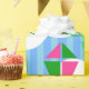 Dieses Papier hat ein geometrisches Design von Drachen, die in den Wolken eines blau gestreiften Himmels fliegen. Es ist sehr farbenfroh und festlich.