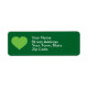 Dieses Adressetikett zeigt ein federgrünes Herz auf dunkelgrünem Hintergrund.