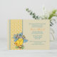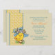 Ein niedliches Vintage-Bild eines Säuglings mit Osterbonnet inspirierte diese reizvolle Einladung. Die Karte hat einen sandfarbenen Hintergrund, der mit einem sonnigen, gepunkteten Band übersät ist, das mit blauen Jakobsmuscheln bestickt ist. Es ist eine großartige Einladung für jedes Frühjahrsfest.