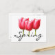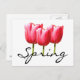 Feiern Sie den Frühling mit dieser Postkarte mit einem Trio von Rose farbigen Tulpen mit einem " Spring " Textdesign.