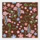 Frühlingsgarten mit Schokoladenbraun Hintergrund, Blumenmuster mit rosa blauen Blumen und grünen Blätter