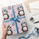 Frühlingspinguine mit Blume in Rosa Geschenkpapier
