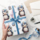 Frühlingspinguine mit Blume in Weiß Geschenkpapier