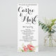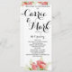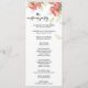 Schönes blumengeschmücktes Hochzeitsprogramm mit hellen Pfannkuchen und grünem Blattwerk. Ein zeitloses Design mit der perfekten Farbmenge.