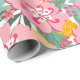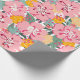 Ein sehr sympathisches Blumenmuster im Frühling, mit hübschen rosafarbenen Blume in einem stilisierten Design, mit dunkelrosa Magenta-Trimm und kleineren gelben Blumen. Auch dunkelgrüne und hellgrüne Blätter sind in das Design integriert. Alles für eine schöne Verpackung, die gut für Ihre Geschenke für viele Gelegenheiten, einschließlich Geburtstage und besondere Veranstaltungen.