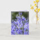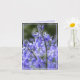 Eine Reihe bläulicher Blume im nahen oben, die mit einem weichen Fokus aufgefangen werden und die zarten, glockenförmigen Blütenblätter und die Wassertropfen auf ihnen hervorheben. Die blauen Farbtöne der Blume heben sich von den unscharfen grünen Hintergründen ab und schaffen ein Gefühl von Frische und Frühling. Schöne Geburtstagskarte für jemanden, den Sie interessieren. Links für Ihre persönliche Nachricht.