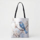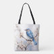Genießen Sie die Schönheit des Frühlings mit lebhaften Farben, einer zarten Natur und einem fröhlichen Bluebird auf einem blühenden Zweig.