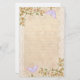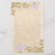 Die Stationery besticht durch sanfte Pfirsichblüten mit violetten Schmetterlingen auf zartem, spitzengepfirsichfarbenem Hintergrund.