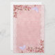 Die Stationery besticht durch sanfte rosa Blüten mit violetten Schmetterlingen auf zartem, spitzenrosa Hintergrund. Leicht ausgekleidet.