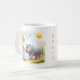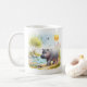 Tasse mit einem Aquarell Hippopotamus in einer Frühlingslandschaft. Personalisierbar.