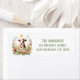 Rücksendeadressen-Aufkleber mit einer Aquarellkuh in einer Frühjahrslandschaft. Personalisierbar.