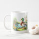Tasse mit einer Aquarellente in einer Frühlingslandschaft. Personalisierbar.