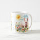 Tasse mit einem Aquarellschwein in einer Frühjahrslandschaft. Personalisierbar.
