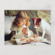Frühstück im Bett: Mädchen, Terrier und Kitty Cat Postkarte