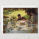 Dieses Design zeigt ein Gemälde des italienischen Künstlers Giuseppe de Nittis (1846-1884). Es zeigt eine Familie frühstücken an einem formellen Tisch im Garten. Eine Frau und ein kleiner Junge sitzen am Tisch, und es gibt einen leeren Platz, vielleicht, wo der Ehemann der Dame sitzt. Im Garten laufen Enten und Schwäne auf dem Gras, und der Junge versucht, einen der Vögel mit seinem Essen füttern. Die Familie isst aus feinen Porzellanplatten und auf dem Tisch ist weißes Leinen. Auf dem Tisch steht auch ein Strauß mit Blume aus einer Vase. Die ursprüngliche Kunst wurde 1883 von Giuseppe de Nittis gemalt.
