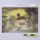 Dieses Design zeigt ein Gemälde des italienischen Künstlers Giuseppe de Nittis (1846-1884). Es zeigt eine Familie frühstücken an einem formellen Tisch im Garten. Eine Frau und ein kleiner Junge sitzen am Tisch, und es gibt einen leeren Platz, vielleicht, wo der Ehemann der Dame sitzt. Im Garten laufen Enten und Schwäne auf dem Gras, und der Junge versucht, einen der Vögel mit seinem Essen füttern. Die Familie isst aus feinen Porzellanplatten und auf dem Tisch ist weißes Leinen. Auf dem Tisch steht auch ein Strauß mit Blume aus einer Vase. Die ursprüngliche Kunst wurde 1883 von Giuseppe de Nittis gemalt.