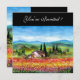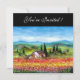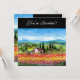 Toskana Landschaft, farbenfroh, lebhaft, ausdrucksvoll, die italienische Landschaft, die Mohnfelder, die wunderschöne Sommerflora in leuchtendem Grün, Gelb, Braun, Blau, Weiß, Wiesen, Blume, Zypressen und Olivenbäume, rustikales altes Bauernhaus unter dem blauen Himmel und weiße Wolken .Acrylmalerei auf Leinwand .