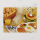 Frühstück von Speck, Eiern und Krug mit Milch Postkarte